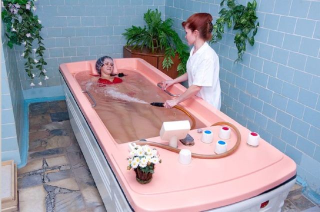 Среди популярных методов лечения - подводный душ-массаж, ванны с ароматическими травами и минеральными веществами, аппликации с использованием парафина, озокерита и грязи, разные виды аппаратной физиотерапии, солевые ингаляции, массаж, лечение пиявками, а также занятия по физкультуре.